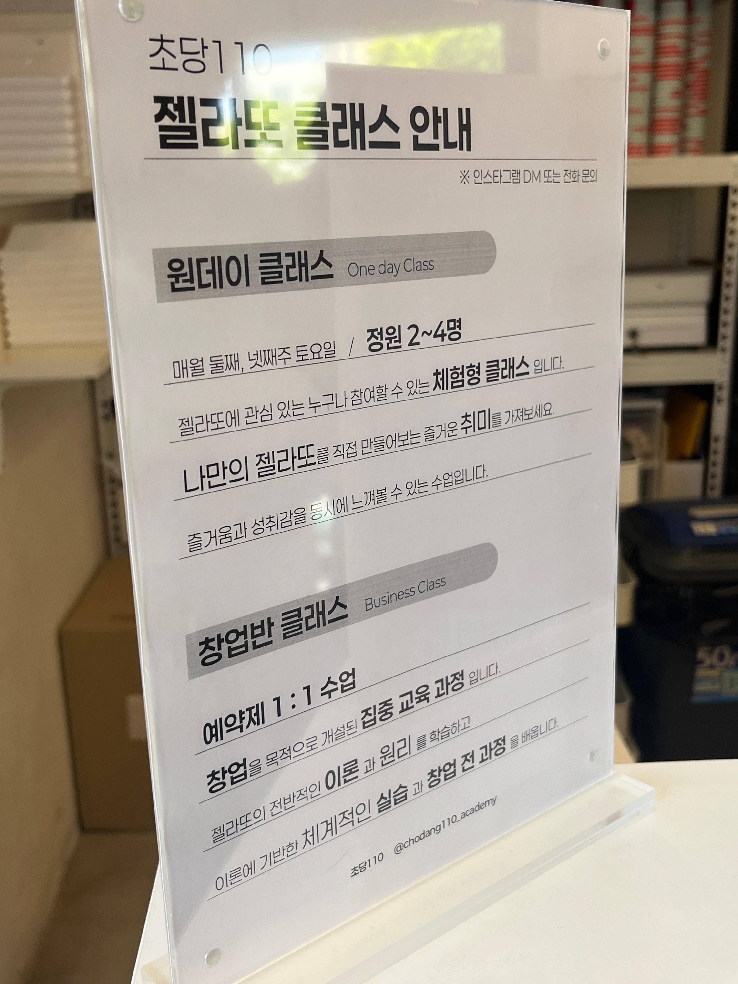 또한 원데이 클래스와 젤라또 창업 클래스도 운영 중이니 관심 있는 분들은 참고해 보세요.