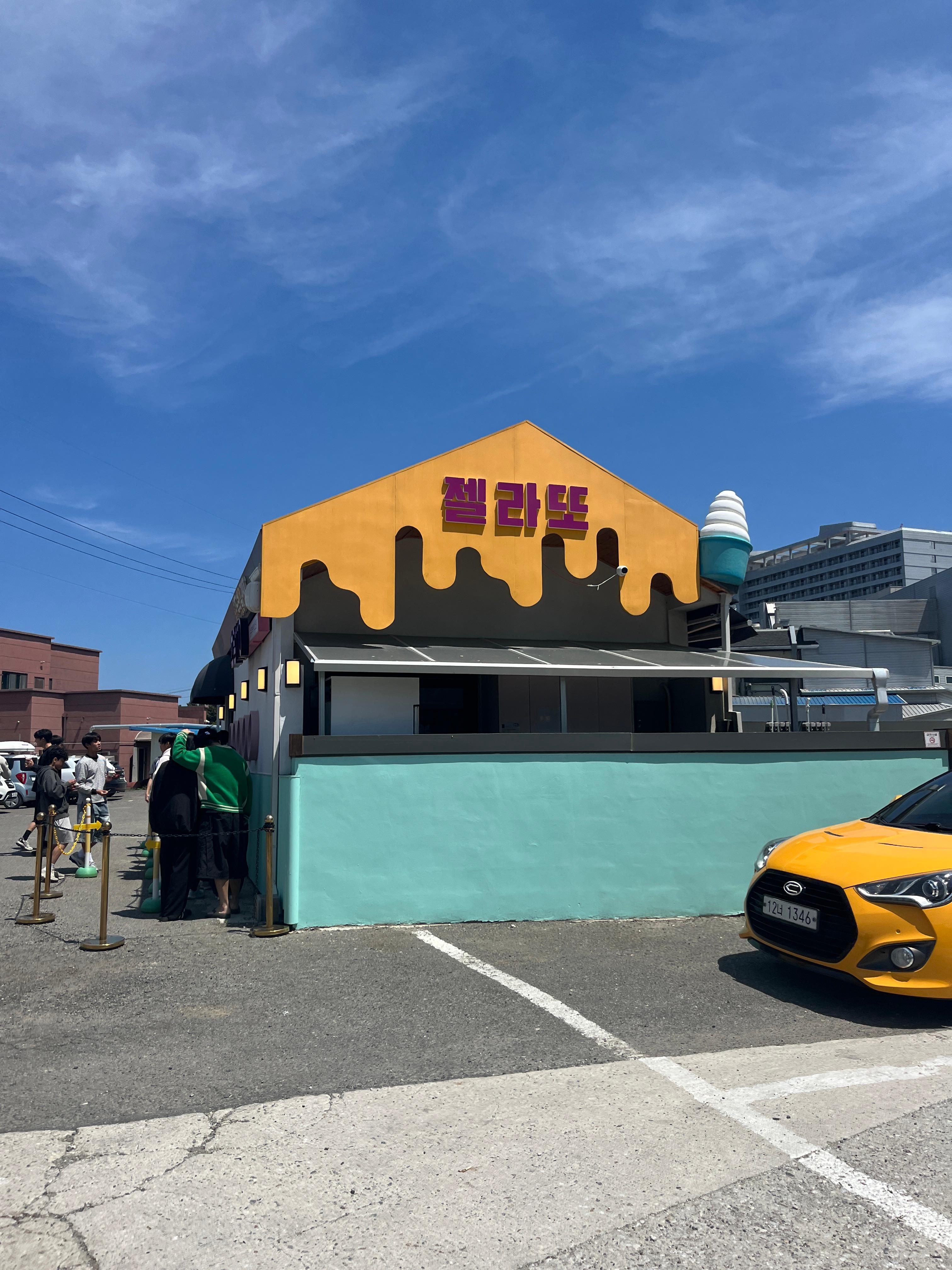 강릉 초당동 골목에 자리한 '초당110'은 멀리서도 눈에 띄는 감성적인 외관이 인상적인 젤라또 전문점이에요.